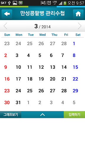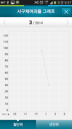 '만성콩팥병 관리수첩'모바일 어플리케이션은 본인의 월별 검사결과를 입력하여 지속적인 변화를 그래프로 확인할 수 있습니다.