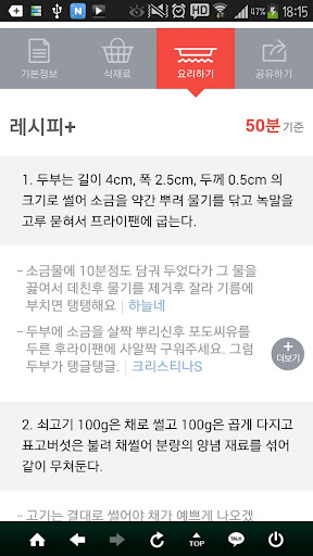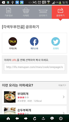 - ★★★★☆ 득템한 레시피들을 카카오톡이나 페이스북 친구에게 보낼 수 있어서 좋군용~~ id:jenk-