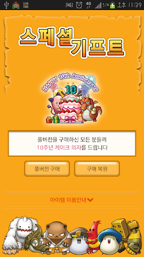 모든 풀버전 구매자에게 메이플스토리 10주년 축하 케이크, "케이크 의자" 아이템 쿠폰을 드립니다.