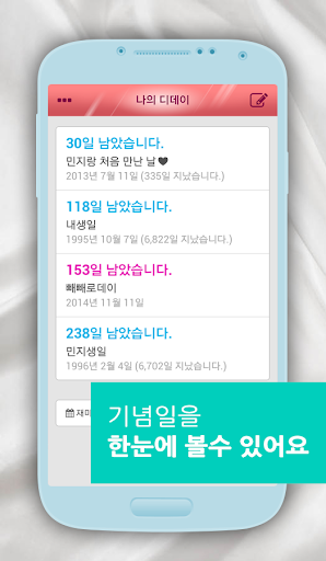 - 입력한 날로부터 기념일을 한눈에 볼수 있습니다.