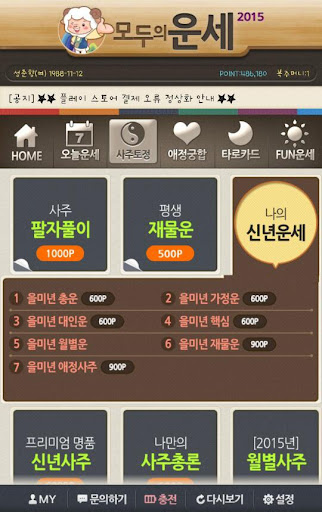 모두가 간편하게! 재미있게! 즐길 수 있는 모두의 운세 2015가 여러분을 찾아 왔습니다.