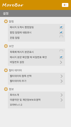 이러한 문자메시지는 시스템 문자함에 도착하기 전에 모아바가 관리하도록 설계되어 있으며(단, 키켓은 제외) 폰 분실 시 쉽게 볼 수 없도록 비밀번호로 보호할 수 있습니다.