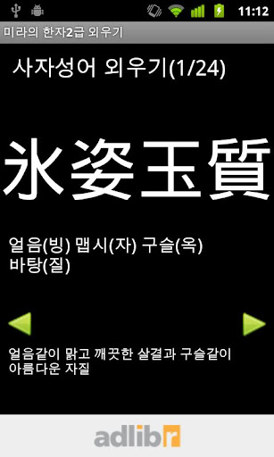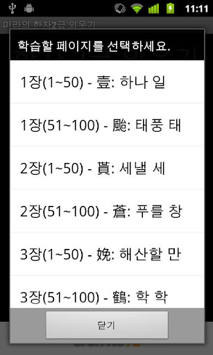 : 학습 시작 -> 화면 터치로 숨겨진 뜻,음/한자어 확인