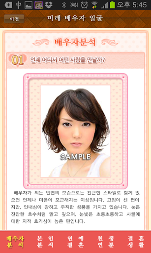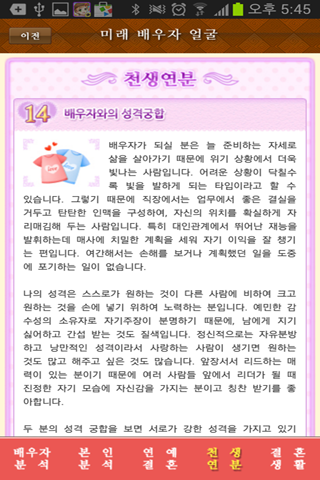 홈페이지 회원 15만 돌파한 헬로우운세(http://www.hellounse.com)에서 유명 역학자와 운세 DB 전문가가 오랜시간 심혈을 기울여서 만든 운세! 평생 당신과 함께 할 배우자의 얼굴을 분석하여 보여드립니다.