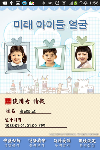 홈페이지 회원 15만 돌파한 헬로우운세(http://www.hellounse.com)에서 유명 역학자와 운세 DB 전문가가 오랜시간 심혈을 기울여서 만든 운세! 나의 미래 아이들얼굴을 보여 드립니다.