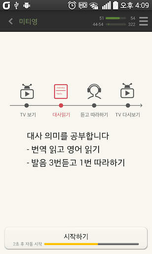 - 한 단원이 끝나면 자막없이 바로 미국 방송을 볼수 있습니다.