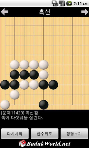 이전문제, 다음문제, 다시하기, 한수뒤로, 정답보기로 쉽고 재미있게 사활을 공부할 수 있습니다.