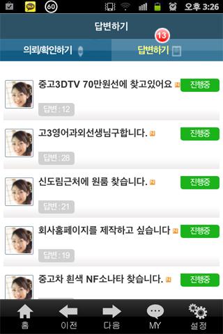 소비자는 원하는 내용을 스마트폰에서 앱을 이용하여 "의뢰"하면 그내용에 맞는 사업자(업체/개인)에게 답변이 옵니다.