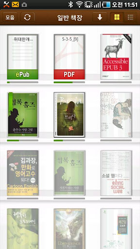 - 개인 파일 읽기 : 개인 소장 파일도 읽기 가능(ePub, PDF 가능. txt, hwp 등은 추가 예정)
