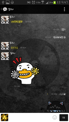 카카오톡 상단메뉴 더보기 > 설정 > 테마설정 > 방사능 카카오톡 테마 > 적용하기