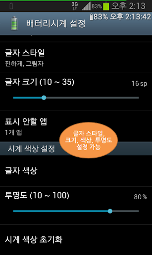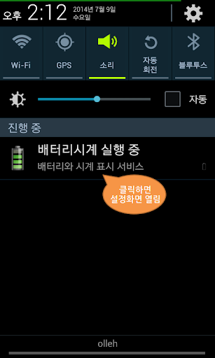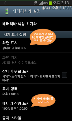 [배터리시계]는 상태바가 없을때도(게임 실행 등) 배터리 잔량과 시계를 볼 수 있습니다.
