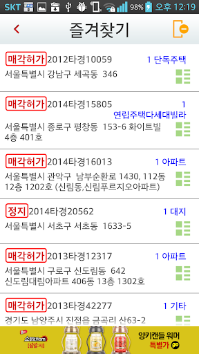 조회중에 맘에 드는 물건은 즐겨찾기 기능을 통해서 따로 관리할수 있습니다.