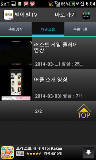채널에 담아서 추천영상들만 조회하여 보여줍니다.