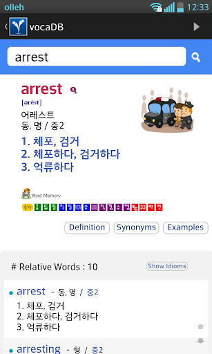 5. 검색 단어와 연관된 품사, 유사어, 반대어 등 연관어 자동 검색과 검색어를 사용한 이디움 및 구동사 검색 서비스