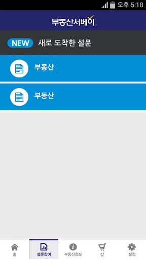 부동산시장에 특화된 부동산서베이는 패널 참여자가 정보를 생성함과 동시에 시장에 결과를 반영하기 때문에 빠른 정보의 습득과 동시에 캐쉬백으로 만족도를 높일 수 있는 모바일 부동산설문 어플입니다.