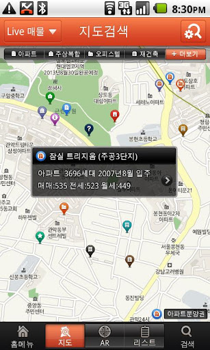 - 매매, 전세, 월세, 시세등의 정보 조회 가능