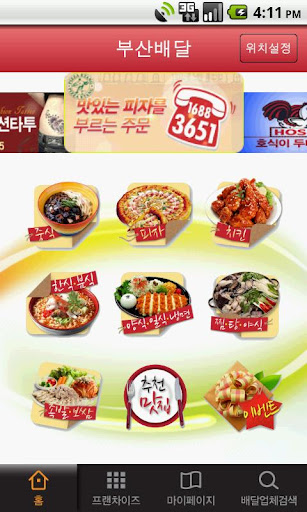 부산배달은 아이폰용, 안드로이드폰용의 서비스가 동시에 이루어지며,