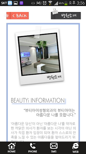 뷰티아이 성형외과 어플리케이션은 저희 본원에 대해 궁금증을 해소하기 위한 전문적인 지식 정보 제공 뿐 만 아니라, 첨단기술이 적용된 "액션 가상 성형" 프로그램이 내장 되어있어 본원을 방문하지 않은 상태에서 본인들의 성형 실루엣을 그려 볼 수 있기에 성형 후의 상태를 미리 예측 할 수 있고, 성형 부위가 전체 외모에 미치는 영향을 미리 시뮬레이션 해 볼 수 있음에 따라 수술 계획 및 상담을 효과적으로 진행 할 수 있다고 하겠습니다.