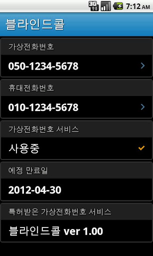 - 개인의 휴대폰 전화번호, 집전화 번호로 연결될 가상의 임시 전화번호입니다.