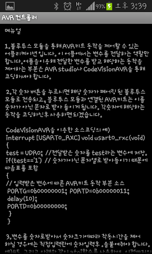블루투스모듈과같은 무선통신모듈이 연결되어있는 AVR키트를 무선으로 조종할 수 있는 어플리케이션입니다.