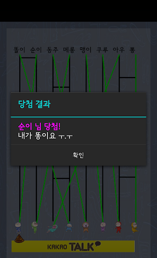 사다리 게임을 즐기고 결과 이미지를 카카오톡으로 공유할 수 있습니다.