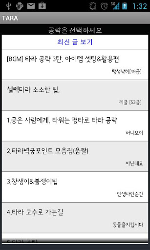사이퍼즈 홈페이지의 공략게시판에서 몇 개를 선택하고 나머지는 직접 게시판을 검색해 나오게 했습니다.