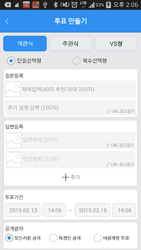 내 친구들과 함께 '특정인공개/비공개투표방' 을 만들어