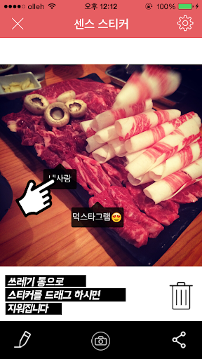 - 사진에 원하는 멘트의 스티커를 붙일수 있습니다.