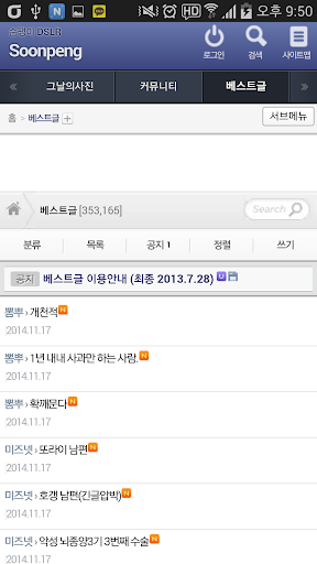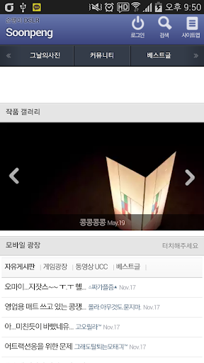 그날의사진, 커뮤니티, 베스트글, 실시간TV, 게임광장, 갤러리, UCC, 리뷰, 상점, 고객센터