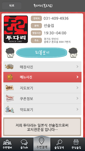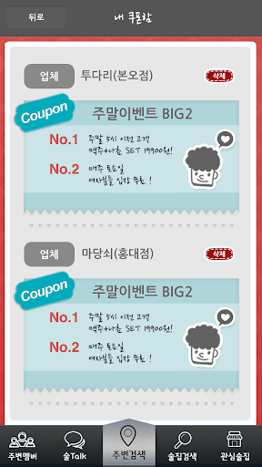 주변검색부터 내가원하는술집 관심술집 쿠폰할인 그리고 술집에서의채팅기능까지!!