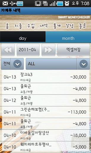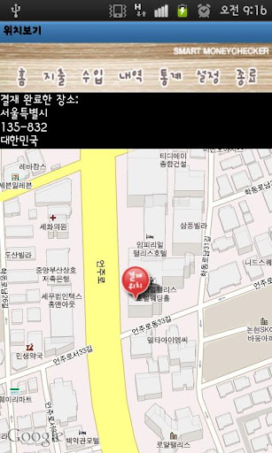 4) 수입,지출에 관한 상세 내역과 카드결제시 자신이 어디에서 결제 했는지를 지도로 보여줍니다.(지도 서비스는 지출쪽만 제공합니다.)