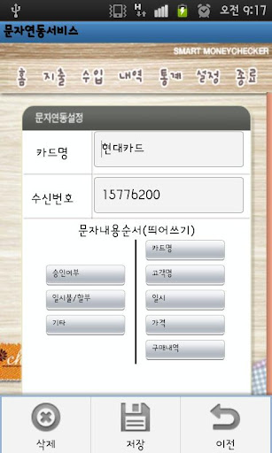 2) 카드 사용시 오는 결제문자를 연동하여 카드 사용내역이 실시간으로 지출에 등록됩니다.