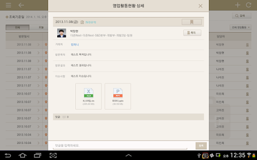 - 영업활동현황 : 영업사원들간의 영업활동 내역을 실시간 공유 및 취합 가능