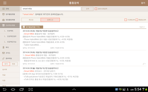 - 업무활동현황 : 임직원간의 업무활동 내역을 실시간 공유 및 취합 가능