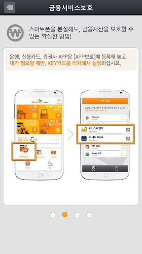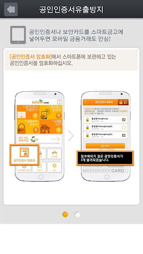 스마트폰에 저장되어 있는 공인인증서를 암호화시킴. 금융APP 실행 시, 카드 터치하면 자동으로 암호해제