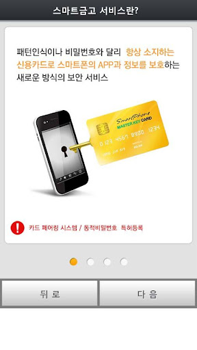 기존의 패턴인식이나 비밀번호로 인증하는 보안서비스와는 달리 신용카드와 스마트폰의 터치를 통한 페어링기술로 본인 인증하여 스마트폰 내 정보를 보호할 수 있는 새로운 방식의 보안서비스. ★공인인증서유출방지 ★중요문서암호화 ★금융서비스보호 ★사생활보호를 위해 사용하면 유용합니다. .