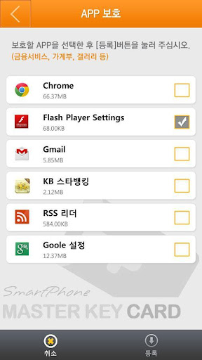 금융 APP, 사생활관련 APP을 보호가능. 등록한 APP은 KEY카드를 터치해야 실행 가능