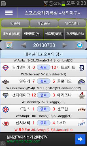 해외야구-스코어/팀순위/개인순위/일정/결과/