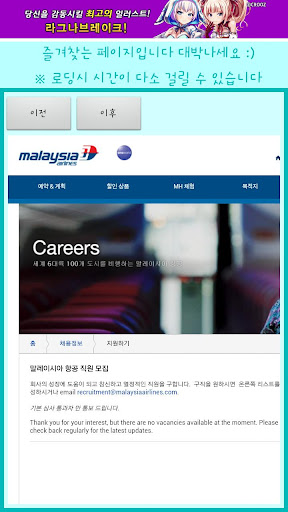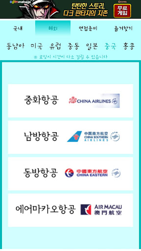 국외항공사의 채용공고가 나라별로 나뉘어져 있어 쉽게 볼 수 있습니다.