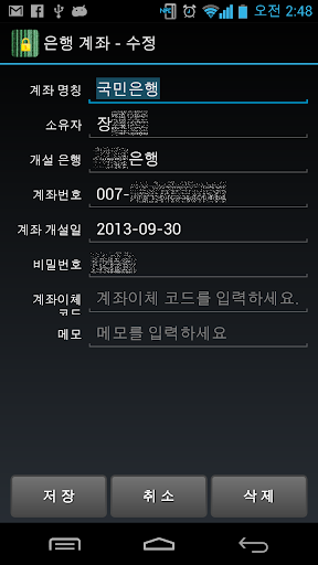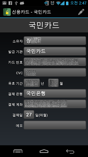 신용카드나 은행계좌 자료 입력 시 민감한 정보를 입력하는게 꺼려지신다면 필요한 부분만 입력하고 저장하면 됩니다.