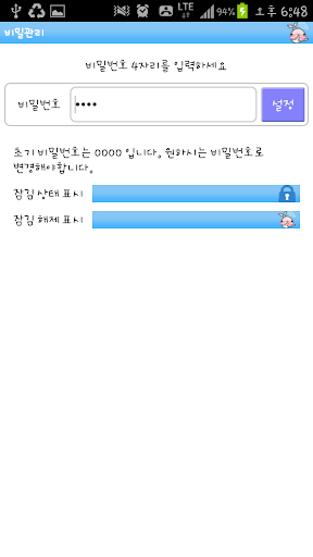 초기 비밀번호는 '0000' 입니다. 설정에서 변경하세요.