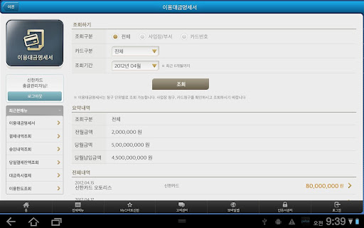 ○ 이용대금명세서 – 이용대금명세서, 결제내역조회