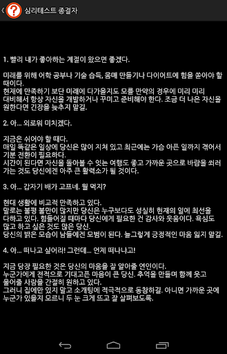 업데이트 시 최신 순으로 심리테스트가 추가 될꺼에요~