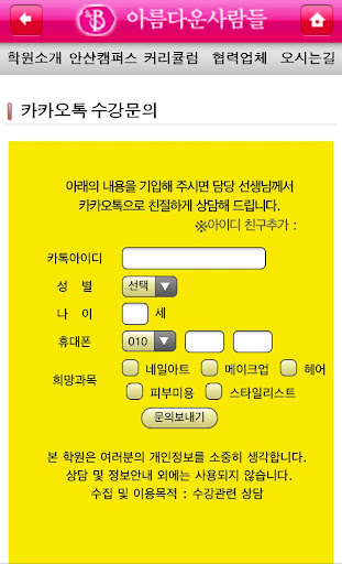 아름다운사람들뷰티스쿨 안산캠퍼스 수강정보 안내 및 실시간 SMS, 카카오톡 수강문의 제공.