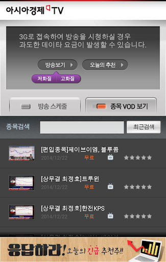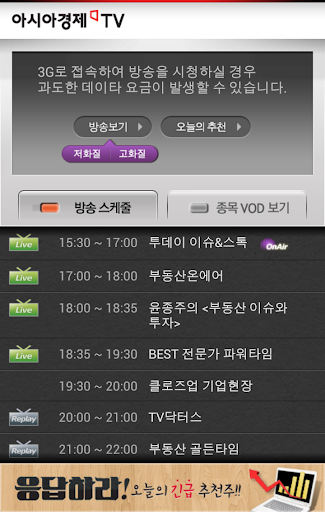 (※ 3G/LTE로 접속하여 방송을 시청하실 경우 과도한 데이터 요금이 발생할 수 있으니 이용시 꼭 확인 바랍니다.)