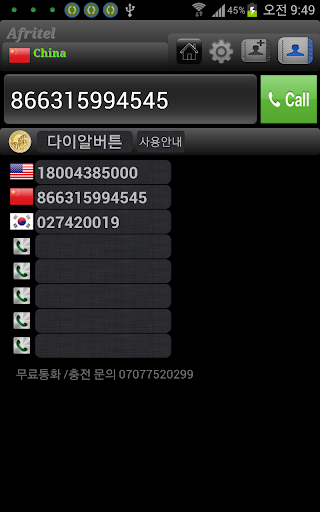 免費玩아프리텔 무료국제전화 중국 CHINA 미국 카나다 App