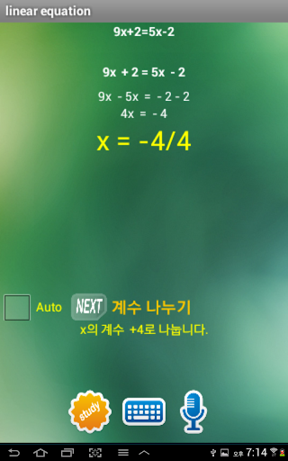 - 일차방정식 학습 (계산 과정 식을 단계별로 볼 수 있음)