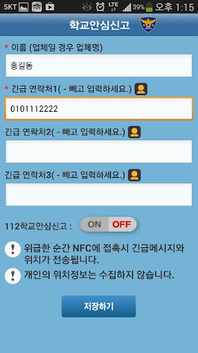 가족, 지인 및 경찰에게 자신의 위치를 문자로 신고 할 수 있는 서비스 입니다.