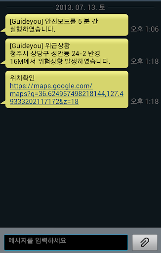 지인에게 위치와 지도가 문자메시지로 전달되게 된다.