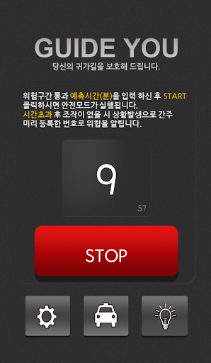 30초 후 지인에게 내 위치가 전송됩니다.(실수로 뽑았다면 STOP를 누르고 해지하면 됩니다.)